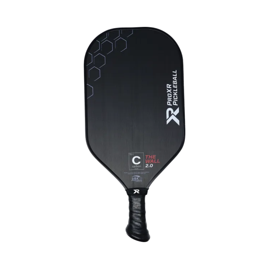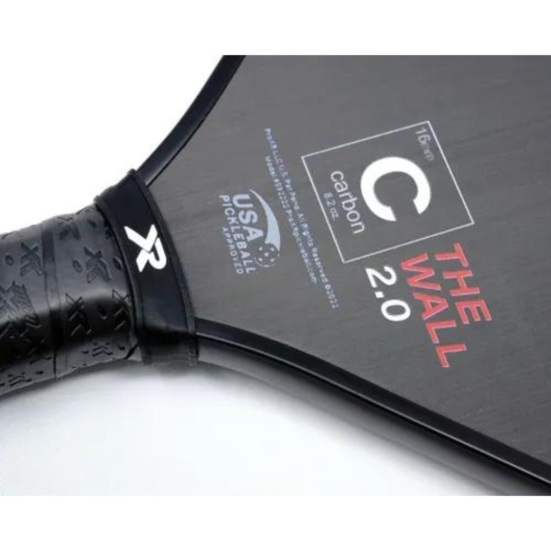 ProXR Pickleball's "The Wall" 2.0 Carbon features patent pending XR-23 handle technology, proven effective in major sports such as the MLB and NHL. Founded in ergonomics and bio-mechanical science, the unique handle shape optimizes your hand's connection to the paddle to create quicker reload, increased spin and added control. ProXR Pickleball's "The Wall" 2.0 Carbon paddle features the highest quality materials on the market, allowing you to play your best game.