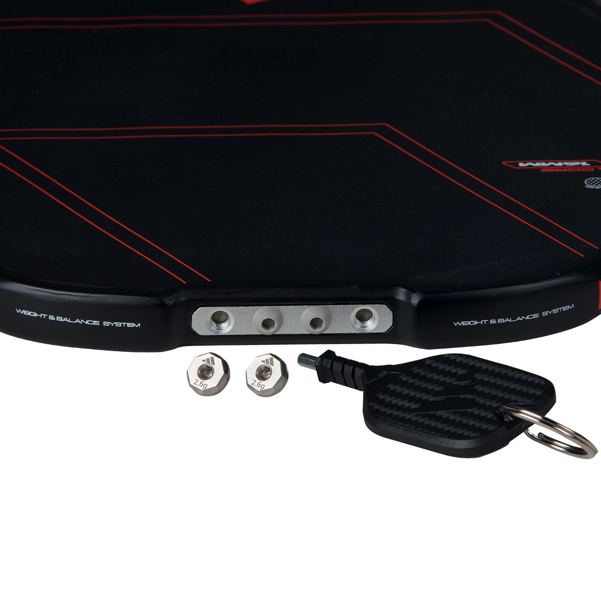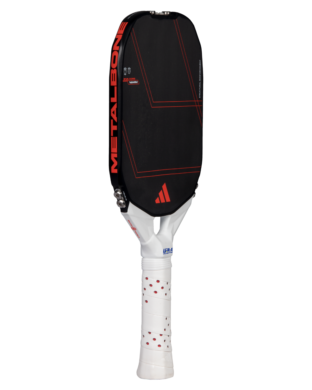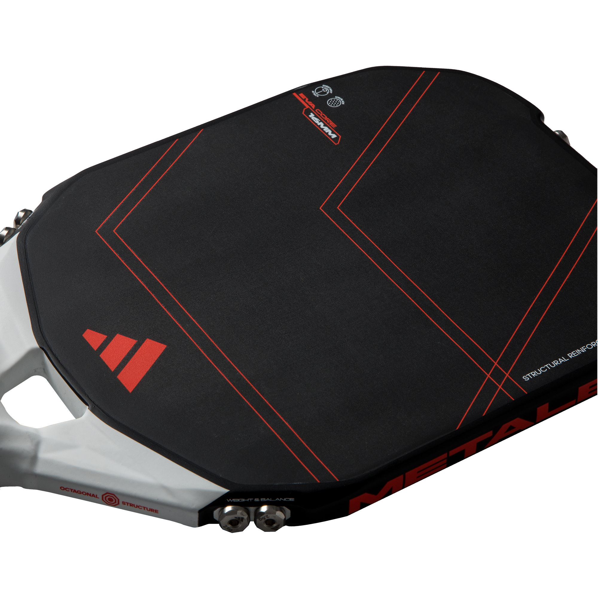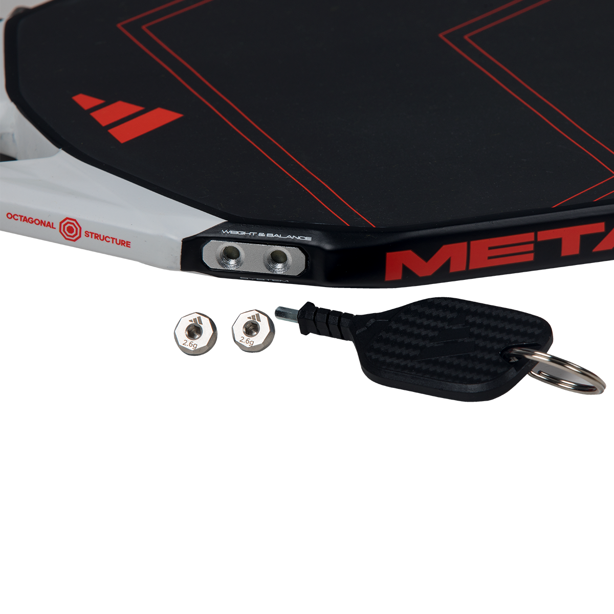 The Adidas METALBONE S is an elite all-court paddle designed for precision and control. Its unique construction, elongated shape, and wider sweet spot provide exceptional reach and stability. The 16mm thickness offers a balance of power and control, while the textured surface maximizes spin. Customize your game with the paddle's innovative adjustable weight system, allowing you to add weights to both the sides and top of the paddle. This added flexibility allows you to fine-tune its balance and feel to suit your individual playing style.