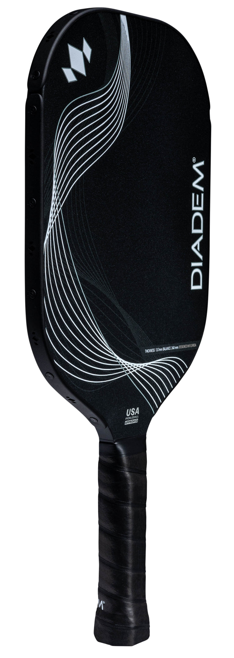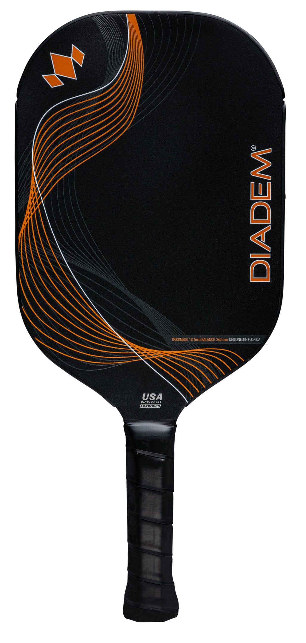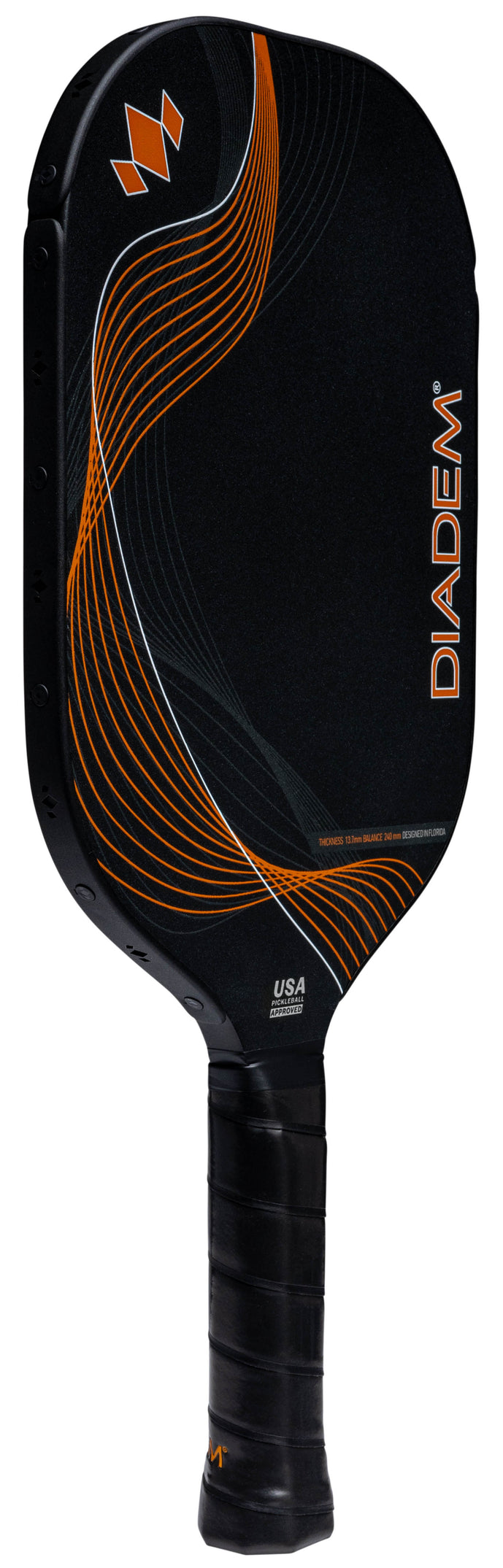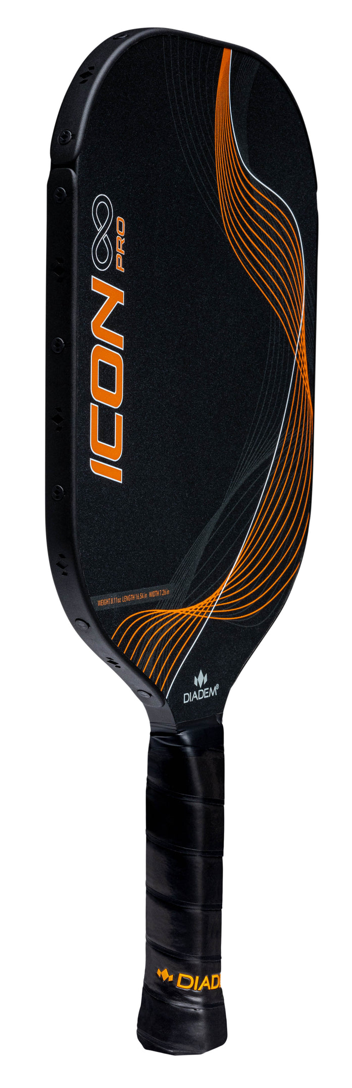 Introducing the new ICON Infinity Series: Diadem's most advanced evolution of the iconic paddle series, engineered for players who demand superior performance and cutting-edge technology. Crafted with precision, this paddle features a unique Dual Foam Core, combining high-density Orange foam at the frame for enhanced stability and inner EVA foam for increased power, extending the sweet spot.