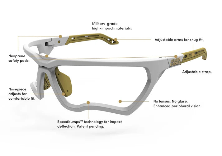 Unlike generic sports eyewear, Kitchen Blockers are purpose-built specifically for the fast pace of pickleball. With impact-resistant lenses and a secure, no-slip fit, you can focus fully on your game — not your eyewear.